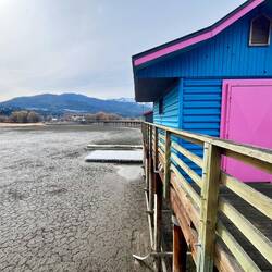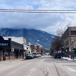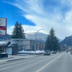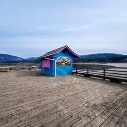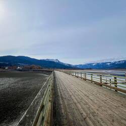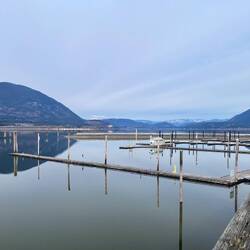Also beschließen wir, die Weiterfahrt gemütlich anzugehen und machen einen Zwischenstopp in Salmon Arm. Die kleine Stadt liegt direkt am Shuswap Lake und ist bekannt für ihre entspannte Atmosphäre, viel Wasser und eine der längsten Holz-Seepromenaden Kanadas. Im Sommer scheint hier richtig was los zu sein – jetzt wirkt alles eher ruhig und gemütlich. 🏠