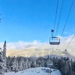 Nach zwei Regentagen kam dann endlich die Wende ☀️. Der Regen hörte auf, es blieb bewölkt, aber der Powder war erstmal weg. Richtig gut wurde es erst mit der Sonne. Wir konnten die Pisten sinnvoll nutzen, viel fahren und das Gebiet weiter erkunden. Ein Highlight war die Peak-2-Peak-Gondel 🚡, die Whistler und Blackcomb verbindet. Sonne, bessere Sicht, und mit jeder Abfahrt wurden die Bedingungen angenehmer. So macht’s wieder Spaß 😍.