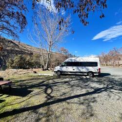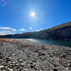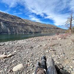 Kurz vor Kamloops finden wir einen schönen Stellplatz direkt am Thompson River beim kleinen Campingbereich Juniper Beach Provincial Park. Auf den ersten Blick wirkt alles ziemlich idyllisch: direkt am Wasser, viel Platz, kaum Leute und weit genug von der Straße entfernt – perfekt für eine ruhige Nacht.