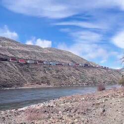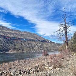 Züge spielen hier eine riesige Rolle. Kanada ist ein Land der Güterzüge – oft über zwei Kilometer lang und teilweise mit mehr als hundert Waggons. Sie transportieren alles von Getreide über Autos bis zu Rohstoffen quer durchs Land. Viele Strecken verlaufen entlang der Flüsse durch die Täler der Rockies, genau wie hier am Thompson River. Manchmal hört man sie minutenlang vorbeiziehen, bevor der letzte Wagen verschwunden ist. 🚞