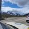Die Straße führt durch Schneewände bis man eine Aussicht auf die Fjorde hat.
