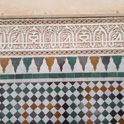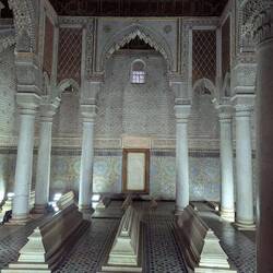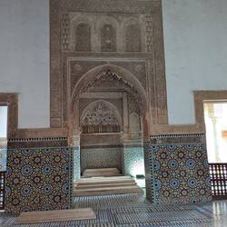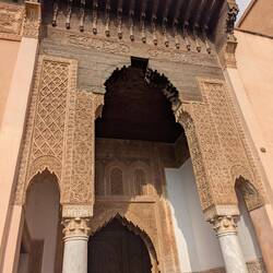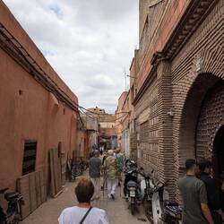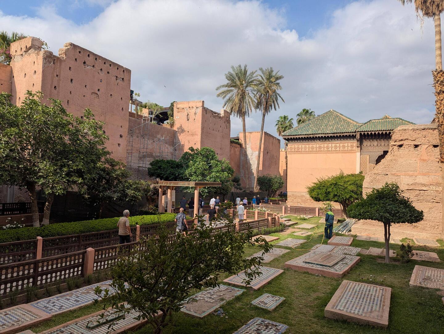 De eerste volle dag in Marrakesh begon optijd in de Saaditombes zodat we voor de grote groepen uit waren. Dit lukte bijna, omdat het tempo van onze groep wat laag ligt.