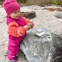 Schöner Strand an dem man auch Fossilien finden können soll. Wir haben leider keine gefunden. Dafür hat Mila Spaß gehabt mit den Steinen zu spielen.