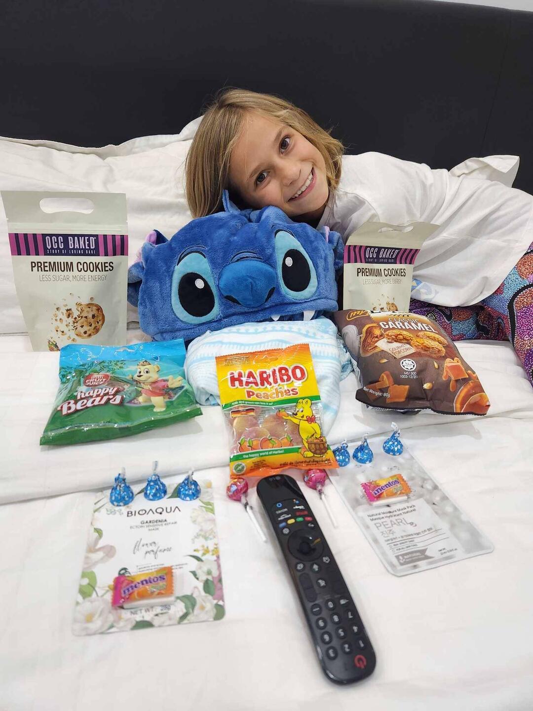 We had a girls movie night and we watched Sing 2 and ate some yummy unhealthy food and stayed up to 12 midnight. And I had a sugar rush and mum told me to calm down.