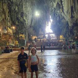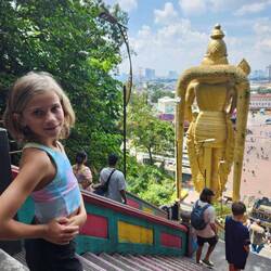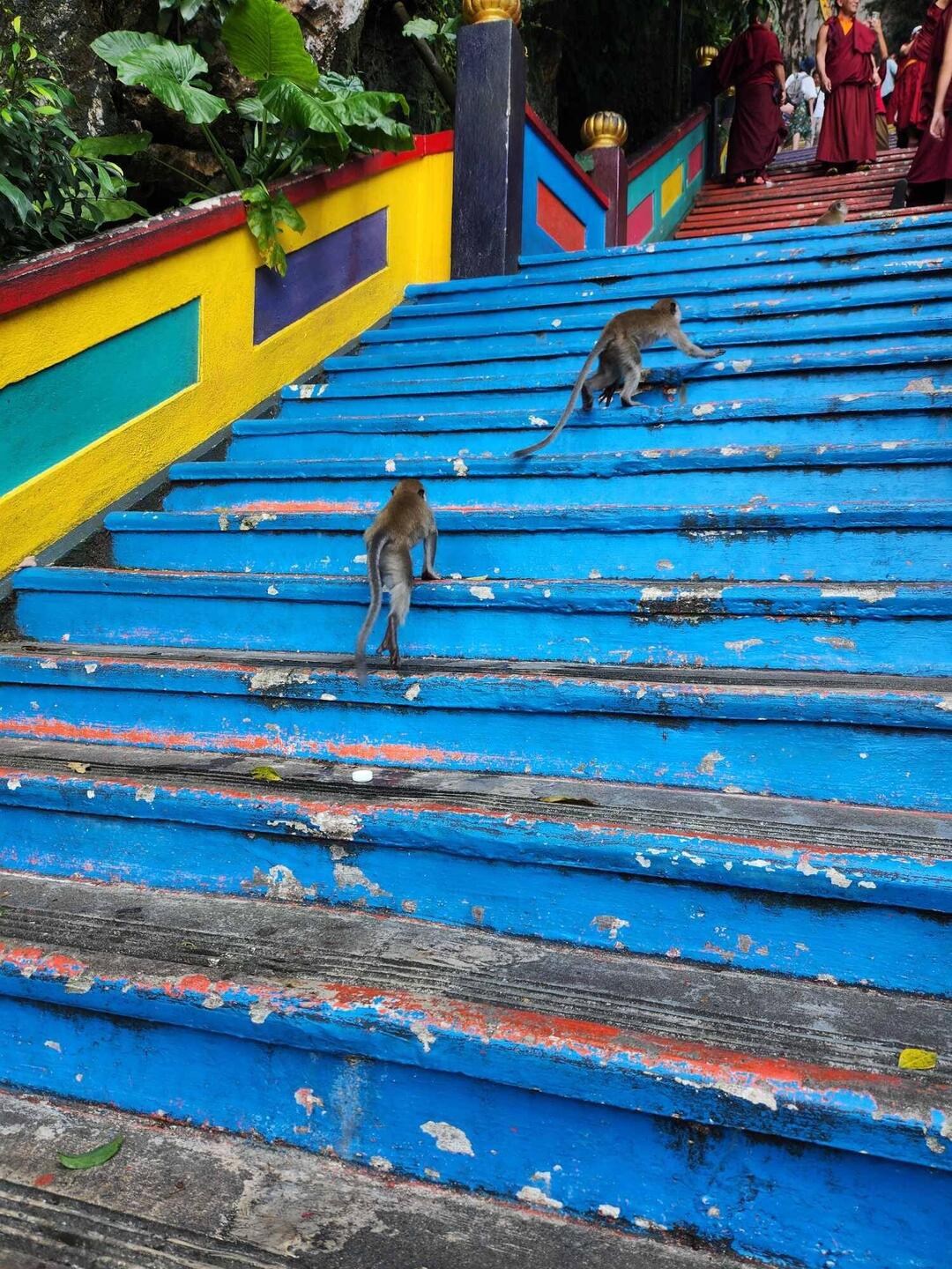 Today we went to Batu caves, it has lots of colourful steps and monkeys everywhere, I even saw a monkey try reaching into someone's purse 👜 it was very funny. It was the biggest cave I have everLæs mere