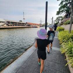 We got a hire car today. The aircon was ok, but it wasn't fancy. We drove to Melaka. DUA hours, which means 2 hours.