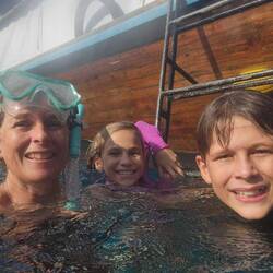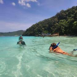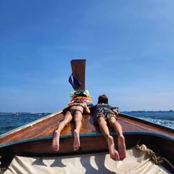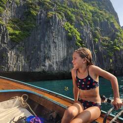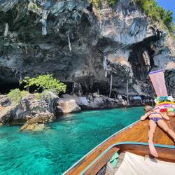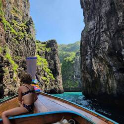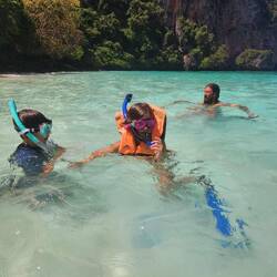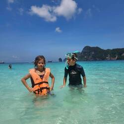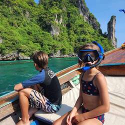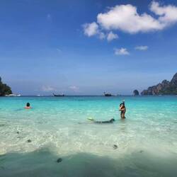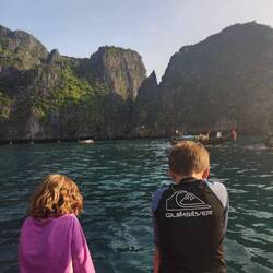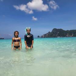We took the speed boat to Phi Phi and the boat was very crowded. Grinch was not happy because he had no room. When we got to Phi Phi I liked it because the water at the beach was so clear.