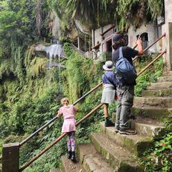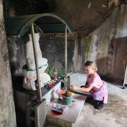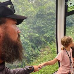 We went in a gondola ride up the mountain and I was really scared. I held dad's hand. We were going to have one to ourselves but had to share with a lady.