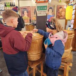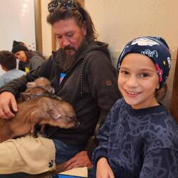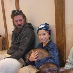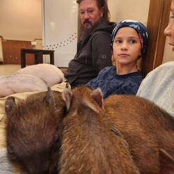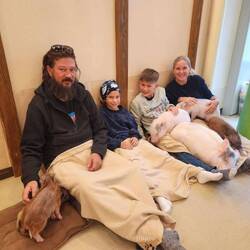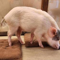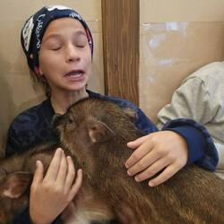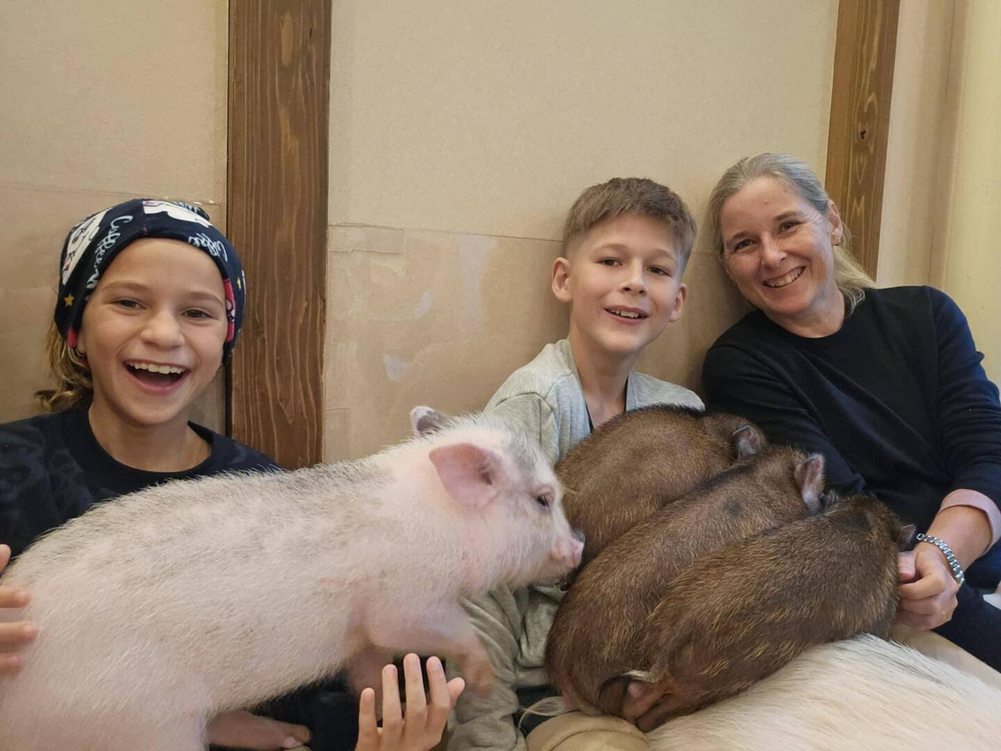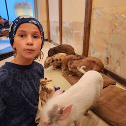 We got to spend the morning with about 12 little piggies. But one was a bit bigger and he liked to sit on Frog and dad.