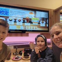 Today was our last day in Kyoto. Sushi train for lunch and it was yum yum yum. Today I liked the plain rice balls with tepanyaki dipping sauce. It goes on like a conveyor belt and it slides in on theLeggi altro
