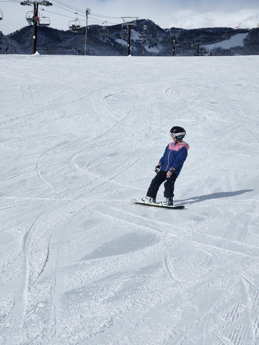 We have spent the last few days just snowboarding and having the best time ever. I have really improved and I can properly snowboard now! At the beginning it was pretty hard but I practiced everyday and I got a little bit better everytime. I was able to catch the chairlift to the top of the mountain with my friend Edie and we came down together heaps of times.