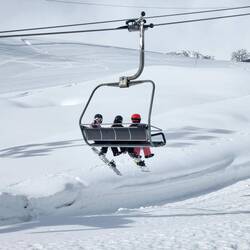 When you get to the top you have to jump off the chair and quickly do your boot up. And then it's one fun ride down the mountain.