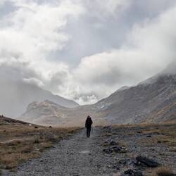 Nachts heftiger Regen inklusive Blitz und Donner, am Morgen hat sich der Regen zum Glück verzogen. Anstrengender Aufstieg, die Hochebene vor dem Col de Chavière ist ebenso spektakulär wie das Steinmeer danach. Die Passüberquerung selbst: volle Konzentration und Trittsicherheit sind Pflicht.