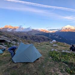 Geschlafen haben wir in der ersten Tournacht in der Hütte - das wird in den kommenden Tagen anders sein. Wir wandern zwar weiterhin von Hütte zu Hütte, werden drei der fünf Übernachtungen aber im eigenen Zelt verbringen. Das freie Campieren im Nationalpark ist verboten, aber es gibt an vielen Refuges die Möglichkeit, ein kleines Zelt auf dafür ausgewiesenen Arealen an den Hütten aufzustellen. An dtei der bewirtschafteten Hütten, die wir auf unserer Nationalpark-Tour passieren, ist das Zelten gegen eine Gebühr von 5 bis 6 Euro pro Person möglich, und wir werden diese konstengünstige und wilderere Art der Übernachtung nutzen. Ein Zwei-Personen-Zelt dafür steckt in einem unserer Rucksäcke. Zusammen mit dem Vollsortiments an Heringen und Abspannschnüren, das wir als Sicherheitsreserve für stürmische Zeiten mitgenommen haben, schlägt es mit 1,5 Kilo zu buche. Heute Abend werde wir das Trekkingstock-Zelt am Refuge de l’Arpont (unserem Tagesziel) aufbauen. Czytaj więcej