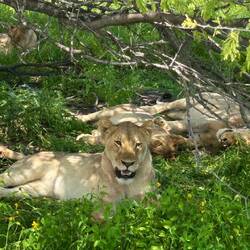 Am nächsten Tag stand der Etosha-Nationalpark auf dem Programm – diesmal auf eigene Faust. 7 Stunden lang sind wir die Landschaft im Park abgefahren, immer auf der Suche nach den nächsten Tieren. Und tatsächlich haben wir neben den alt bekannten Tieren auch ein Löwenrudel erblicken können! Friedlich unter einem Baum liegend. Durchaus etwas respekteinflößend, wenn man mit einem starren Blick fokussiert wird, als wäre man die nächste Mahlzeit.