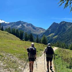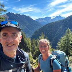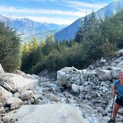 Today we added another 11 miles, climbed 2,700 feet and descended 3,200 feet. Most of the climb was all at once and steep. It offered 270° views with the typical stunning mountain backdrop and glaciers galore. There was a beautiful picnic area at the summit where we had lunch. It was a gorgeous day, hot even, and was back to the typical busyness we have grown accustomed to on the trails.
