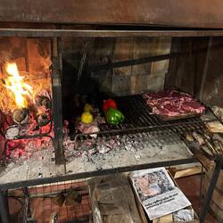 Last night we went for Asado as an Airbnb experience at our host’s house where we were joined by three other Americans. The host makes his own wine, Bonarda, 4 bottles were consumed:) Asado is a traditional Argentine barbecue that involves cooking meat over an open fire. There are some differences, that would seem minor to insignificant to us, but not them, that in Chile they might use coals whereas Argentinians only use wood.