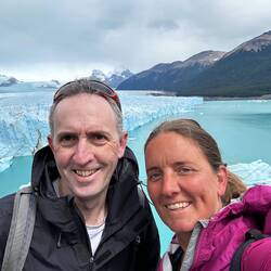 We arrived in El Calafate, gateway to the Los Glaciares National Park. This National Park is home to the massive Perito Moreno Glacier. It’s the third largest glacier in the country, but is most renowned for how close you can walk to it. A series of boardwalks brings you to within a football field where you can walk and listen to the thunderous sounds of glacier calving. Spectacular! Luckily, a couple who hiked the O Circuit of Patagonia landed here too. We met up and were able to visit the glacier together, in all its majesty.