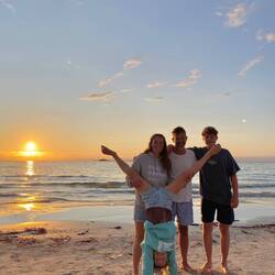 Besten Dank für eure Fotos. Der Strand sieht ja richtig einsam und verlassen aus. Dennoch scheint ihr wohlauf und zufrieden zu sein. Genießt weiterhin die Natur und bleibt schön gesund. Liebe Grüße von Oma und Opa Mau. PS: Vor einer Stunde haben wir eine Info erhalten, dass Helga Mühlberg verstorben ist.
