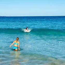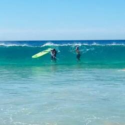 Heute gab es so tolle Wellen 🌊. Kaum angekommen, mussten wir gleich weiter zum Strand. Die Kinder hatten ordentlich Spaß im Wasser. 💦
