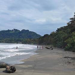 I used the rest of the time to take a short tour of the town and finally visited the beach. The beach in Puerto Viejo consists of black sand which, depending on the angle of the sun, starts to glisten more or less as you walk across - probably due to the different sediments of volcanic origin 🌋