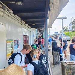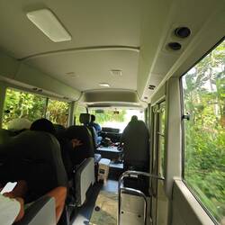 Nach einer verhältnismäßig kurzen Nacht klingelte mein Wecker um 07:00 Uhr. Ich hatte am gestrigen Tag bereits Arne darum gebeten, ob er mich gegen 07:30 Uhr an Land fahren könne. Nachdem ich meine letzten Sachen gepackt und mich von einigen Schüler*innen, die bereits auf dem Maindeck saßen, verabschiedet hatte, kam er dann - ohne dass ich ihn wecken musste - dieser Bitte nach. Wir fuhren noch eine 'Ehrenrunde' um die Regina und dann ging es Richtung Isla Colon. Arne setzte mich an der Transportstation der Schnellboote ab und ich ging zunächst noch etwas Verpflegung für den Tag einkaufen. Pünktlich um 08:30 Uhr ging es mit dem Schnellboot vom 'Caribe Shuttle Service' rüber nach Almirante. Dort gab es einen Umstieg von Boot zu Kleinbus und alle Mitreisenden und ich erreichten pünktlich nach einer Stunde die Grenzstadt 'Guabito' 🚤 🚌