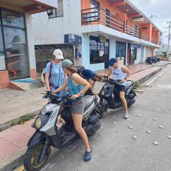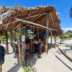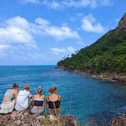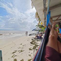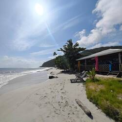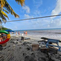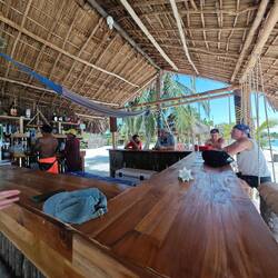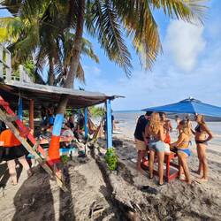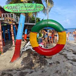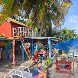 Für eine 24 h Ausleihe inkl. Fuel bezahlten wir pro Person etwa 22€. Also ging es für Kaspar, Maxim, Nicola, Lisa und mich erst einmal Richtung Süden. Nach einigen Stopps und etwa 30 min Fahrt erreichten wir die Südspitze der Insel und betraten den 'Playa Manzanillo'. Der Strand strahlte durch ein paar kleinere Bars mit der passenden Musik einen absoluten 'Reggae-Vibe' aus. Wir gingen den Strand entlang bis zu 'Roland's Restaurant&Bar'. Dort nutzten wir das freie WLan für ein bisschen Recherche und entspannten uns dabei in den vorhandenen Hängematten. Auch unsere Crew kam irgendwann dazu und genoss die Zeit am Strand in vollen Zügen 🧘🏽