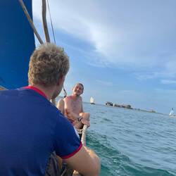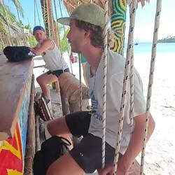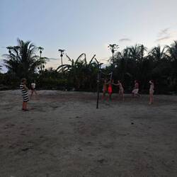 Bis 19 Uhr hielten wir uns dann an dieser Seite der Insel auf und nutzten die Zeit für gemeinsame Schwimmsessions, Hängemattenaufenthalte, Volleyball- und Spikeballspiele sowie Gespräche mit der Besatzung der Johnny, die uns etwa ab 18 Uhr Gesellschaft leisteten 🗣️