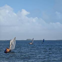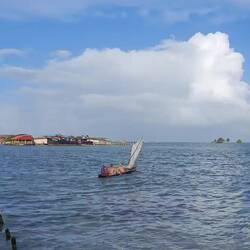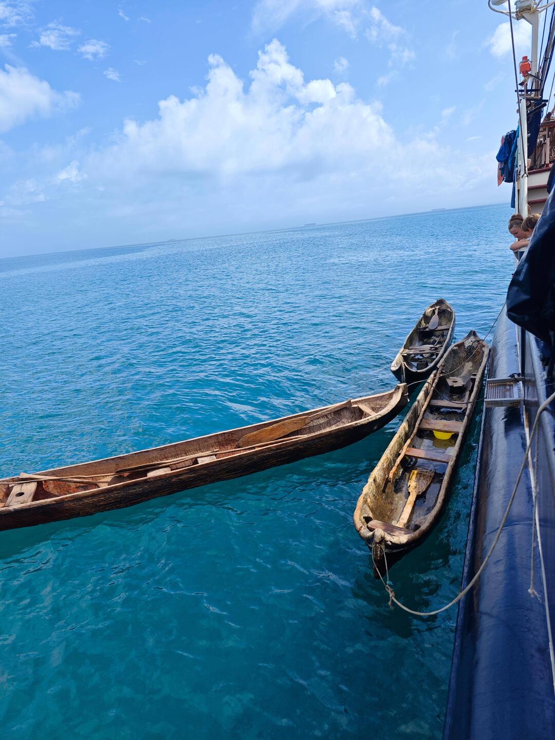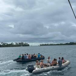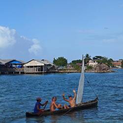 Gegen 15:30 Uhr verließen unsere Gäste dann unser Schiff wieder und wir machten uns bereit für eine weitere spontan vereinbarte Aktion: eine kleine Bootstour mit Einheimischen in ihren kleinen Baumstammjollen. Dazu fuhren wir gegen kurz nach 16 Uhr mit dem Dingi an Land und konnten dann in Zweier- bis Dreiergruppen einmal im 'Vaiana-Stil' eine Runde bis zur Regina Maris und zurück schippern 🛶