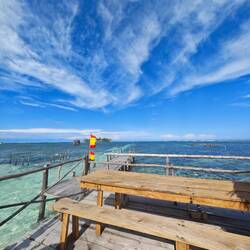 We first sat down at a small beach bar/hut where you could sit on a swing right next to the bar. For the ultimate paradise feeling, we ordered a strawberry, mango and coconut smoothie and enjoyed the weather, the surroundings and the 'vibe' of the island. At some point, we moved to the benches in the water and could hardly believe our presence on this spot of earth 🏝️🍹