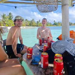 We stayed on this side of the island until 7pm and used the time for swimming sessions, hammock sessions, volleyball and spikeball games and chats with the crew of the Johnny, who kept us company from around 6pm 🗣️