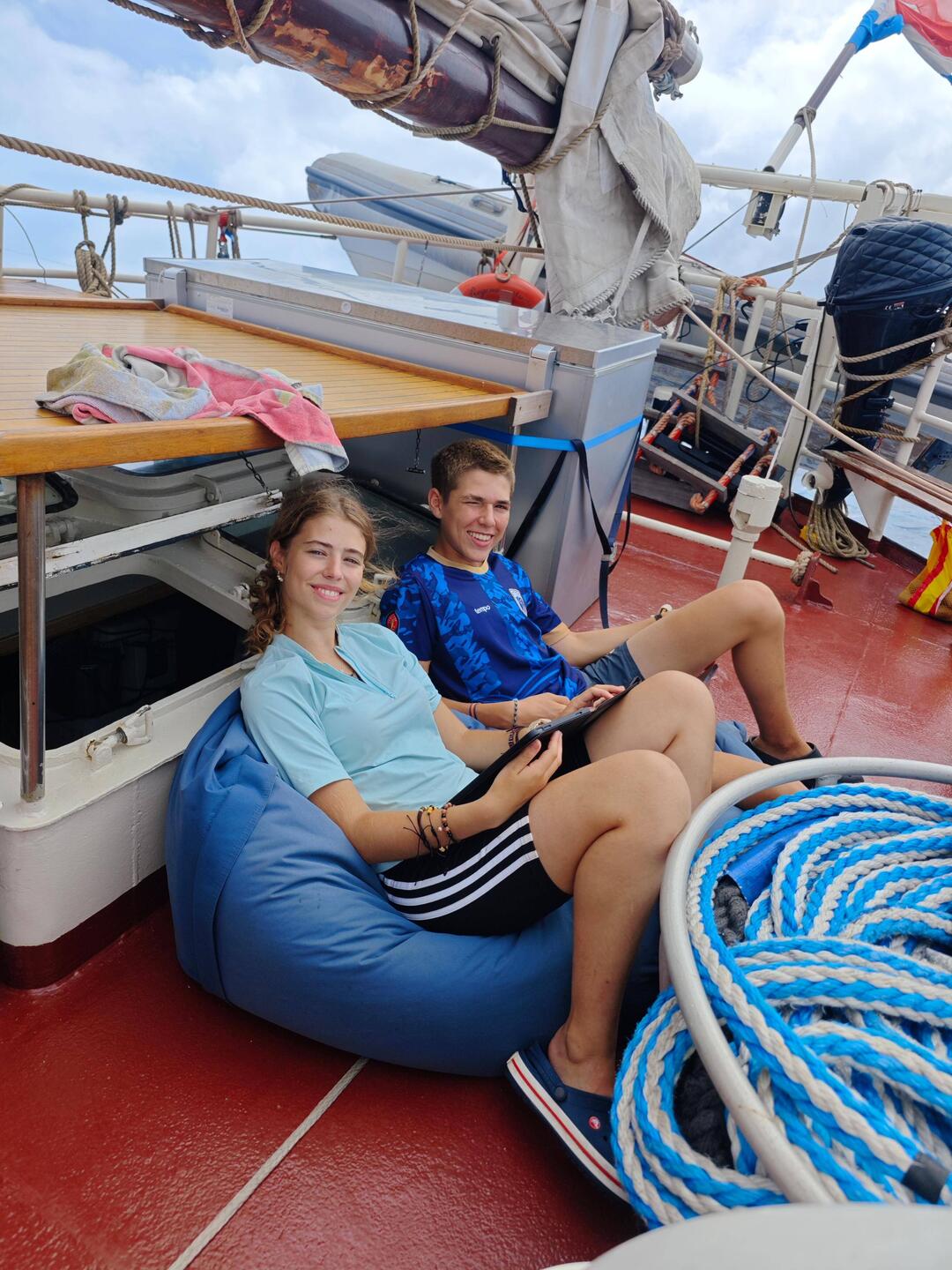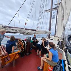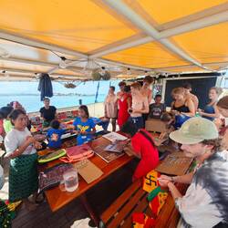 In the end, this school day was just the right thing for everyone to 'bridge the gap', as some had to go to the deck shortly after the start of lessons due to the onset of nausea. The general feedback - especially with regard to the 35 questions - was very positive, so that many decided to talk about these questions with their close friends as well. The groups were divided into pairs, which don't have or didn't have much to do with each other during everyday life on board (?) 💭