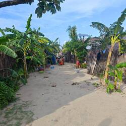 Danach ging es wieder zurück ins Dorf. Auf dem Weg unterhielt ich mich noch mit einem Local, der wissen wollte, woher wir kamen und was es mit all dem auf sich hatte. Im Dorf angekommen gingen Lisa, Nicola und ich in ein gut klimatisiertes Café, tranken einen Smoothie und aßen dazu süßes, örtliches Gebäck. Wir beschlossen uns für den Tag Roller zu mieten, um die Insel (Inselrundfahrt etwa 40 min.) auf eigene Faust zu erkunden. Währenddessen hatten die Kids free-shore-leave-Zeit 🆓