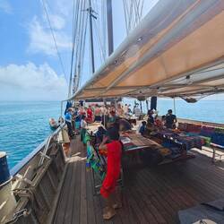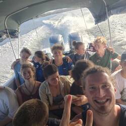 At around 5:30 pm, this procedure was finally over and it was time to head to the dinghy and back to the ship. After a very tasty dinner, I had a chat with Marie about interpersonal relationships on board (including current developments) before we met up with the Johnny's teaching team for Raphi's farewell party. We first took the dinghy to a nearby bar and then made a detour to the nearest dance club. After a few evening anecdotes, we took the dinghy directly from the bar fence back to the ship ⛵