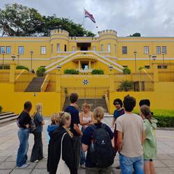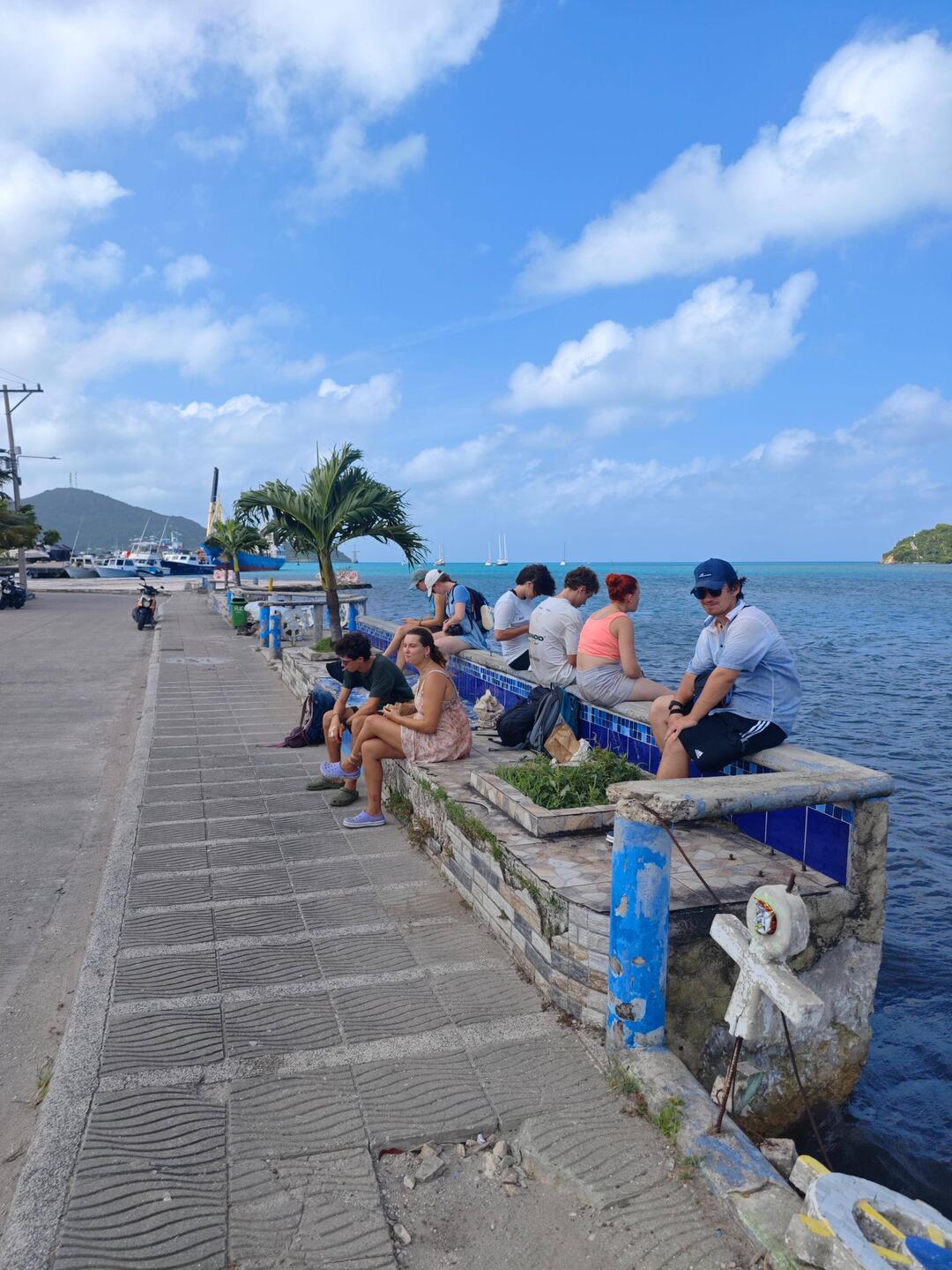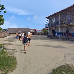At around 3 p.m. we met up with the entire crew in front of the customs office and waited for our clearance. Everyone had to present their passport and collect their stamp themselves. Unfortunately, the passport scanner was out of order that day, so the official at the office had to type in all the passports. We therefore formed time slots in which the students were to return to the building in groups according to counting order. This meant that at least some of the waiting time was used to get to know Isla Colon even better 🚶🏽