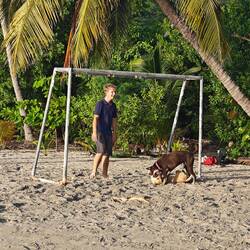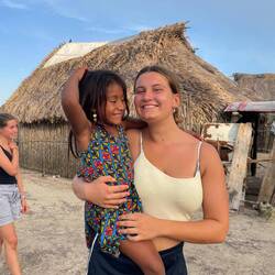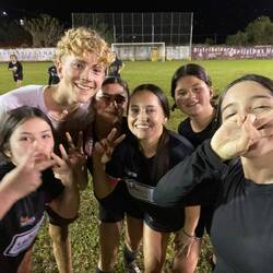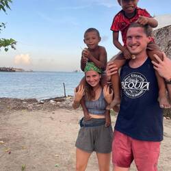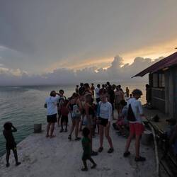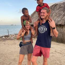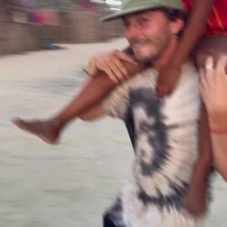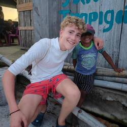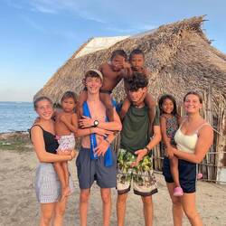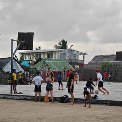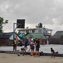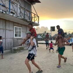 Wohlbehalten kam gegen 17 Uhr dann auch die letzte Gruppe wieder an Land an. Während wir jeweils aufeinander warteten, kamen wir mit verschiedensten Locals und ihren Kindern ins Gespräch. Die Kinder fingen dann zunächst an, um uns herum und infolgedessen mit uns Fußball zu spielen. Danach wollten sie dann gerne auf unsere Schultern klettern, um Blüten von einem nahegelegenen Baum zu pflücken. So kam es nicht überraschend dazu, dass die ein oder andere Cappi von den Kids geklaut, hin-und-her geworfen und versteckt wurde. So nahm der restliche Abend eine unvorhergesehene Eigendynamik an, die mich nach 20 Jahren Zeltlagererfahrung an nichts anderes als einen normalen 'Zeltlagertag' erinnerte. Spielende und tobende Kinder, mal ein Volleyball- und Basketballmatch und viele Kids auf den Schultern 'erwachsenerer Kinder' (sowohl bei Crewmitgliedern, Lehrer*innen als auch Schüler*innen), die in diesem Sinne allesamt eine wundervolle Zeit miteinander verbrachten. Ein karibischer Ferienspaßtag, an denen sich alle Akteure wahrlich noch lange erinnern werden 💖