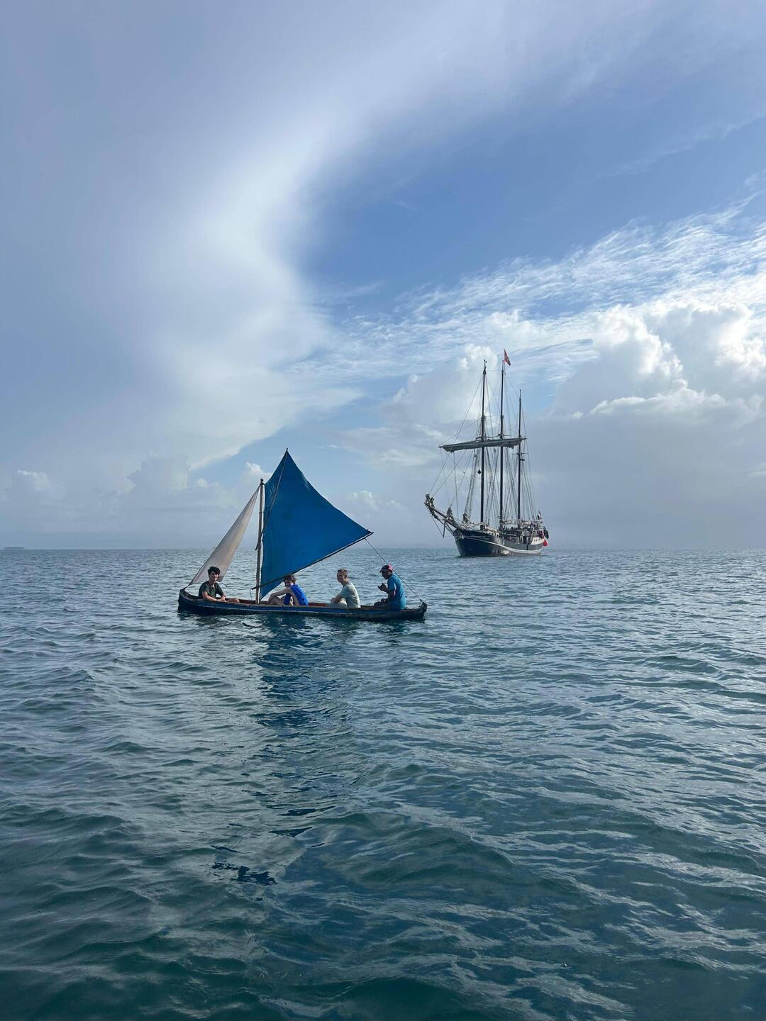 At around 3:30 pm, our guests left our boat again and we got ready for another spontaneously arranged activity: a small boat tour with locals in their small tree-trunk dinghies. We took the dinghy ashore shortly after 4 pm and then sailed in groups of two or three to Regina Maris and back in 'Vaiana style' 🛶