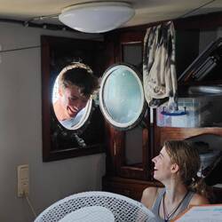 The very funny moment after Marie's exam when Arvid stuck his head through the window of the PL cabin and also having the opportunity to develop my cleanliness pedantry on board to the full 👁️