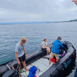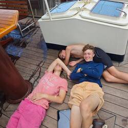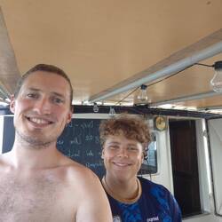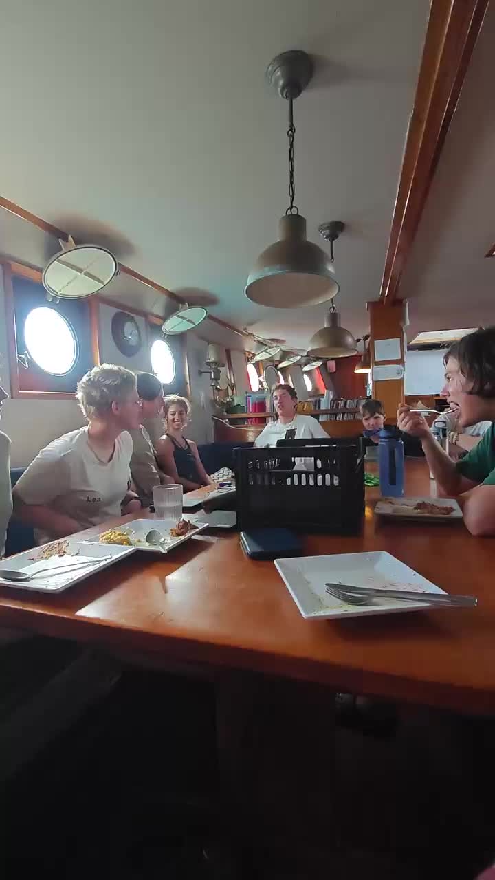 Nach dem Abendessen konnten dann alle noch ins Wasser springen und sich etwas Abkühlung verschaffen. Der restliche Abend wurde dann u. a. für das Schreiben von Expiberichten sowie Anfertigen liegengebliebener Schulaufgaben genutzt. Außerdem schauten wir endlich alle zusammen 'Moana 1' im Messroom. Alle freuten sich zuletzt auf eine deutlich angenehmere Nacht ohne Schaukeln und Seekrankheit 💤