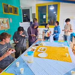 There was no improvement in sight the next day either. The day was supposed to be used for independent and self-directed learning in order to work on presentations in math and physics as well as tasks from the home schools. However, this was hardly possible with the swell and so the time was rather spent on mental and physical recovery and rest 🧖🏽