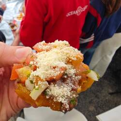 Im Anschluss führte uns unser Guide zu unserem nächsten Kleinbus und es ging Richtung Puerto Viejo. Ich hatte mich für die Fahrt mit dem 'Caribe Shuttle Service' entschieden, da in Puerto Viejo ein zweistündiger Zwischenstopp mit einem inkludierten Mittagessen angeboten wurde. Da Lisa bereits einmal dort war und viel positives darüber berichtet hatte, wollte ich zumindest die Gunst der Stunde nutzen, um einen kleinen Einblick zu erhalten. Gegen 10:40 Uhr kamen wir im Hotel 'Banana Azul' an, wo es dann auch gegen 11:30 Uhr Lunch gab - vegetarische Wraps mit Bananenchips und Salat 🌯
