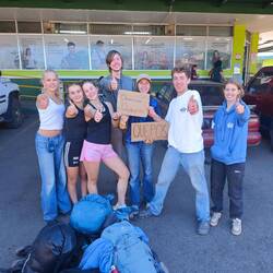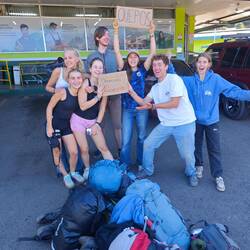 After we had immortalized ourselves on the wall of Roland's Beach Bar, we continued our journey at around 5 p.m. - with Timo in our luggage, of course. The next stop was at 'South West Beach', which was also impressively beautiful. Some of us took the opportunity to play soccer with some of the locals or cool off in the waves. Without further ado, Timo found another playmate and the two of them made themselves comfortable in front of 'our gate'. At around 5:50 p.m., we set off one last time: straight back to our starting point 🛻
