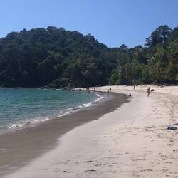 Als nächstes ging es dann zum 'Playa Manzanillo', wo einige die Zeit zum schwimmen, zum Fußball spielen oder zur Erholung nutzten. Matthias und ich holten uns eine frische Kokosnuss, setzten uns in ein umgebautes Holzboot und genossen die Aussicht auf den schönen Strand 🐚
