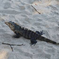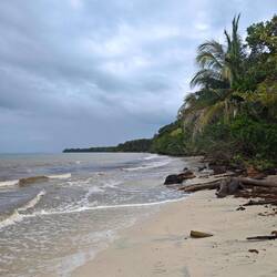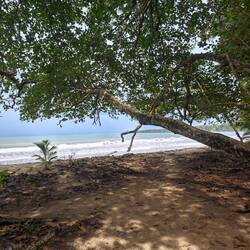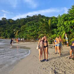 I used the rest of the time to take a short tour of the town and finally visited the beach. The beach in Puerto Viejo consists of black sand which, depending on the angle of the sun, starts to glisten more or less as you walk across - probably due to the different sediments of volcanic origin 🌋