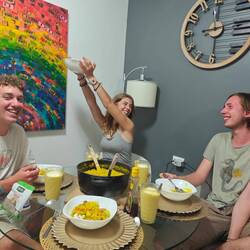 Währenddessen räumten die Schüler*innen ihre Cabins, packten ihre Trekkingrucksäcke für Costa Rica und zogen dann im Anschluss daran Karten für den DeepClean. Bis 18:00 Uhr hatten die Kids dann Zeit ihre Aufgabe gewissenhaft zu erledigen, denn das Schiff sollte so hergerichtet werden, wie sie es bei Ankunft in Amsterdam vorgefunden hatten. So war es kaum verwunderlich, dass der Messroom die ersten 5 Überprüfungen nicht bestehen konnte, da einige Schüler*innen doch noch eine sehr grobe Vorstellung von Sauberkeit und Ordnung hatten. Um fair zu sein: Ich durfte zum ersten Mal die DeepCleanKarten einsammeln und die jeweiligen Bereiche inspizieren - und diesbezüglich würde ich mich schon eher als sehr penibel und pedantisch charakterisieren. Aber: Am Ende profitierten alle davon und konnten - nach sehr schmackhaften Pizzen zum Abendessen - eine wunderschön aufgeräumte, letzte Nacht an Bord verbringen ⛵