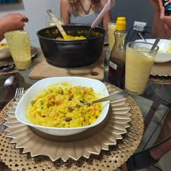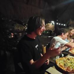 Around half past two, Raphi, Lisa and I also went to the other side of the island. We split up Kaspar and Maxim and then went to the adjacent beach restaurant. We had a delicious rice dish with a very tasty vegetable sauce and two more pizzas, which we shared 🍛🍕