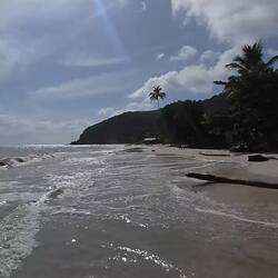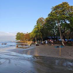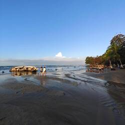 Die restliche Zeit nutzte ich in Form einer kurzen Ortsbegehung und schaute mir zuletzt noch den Strand an. Der Strand in Puerto Viejo besteht aus schwarzem Sand, der je nach Sonneneinfallswinkel beim Herübergehen mal mehr, mal weniger zu glitzern beginnt - wahrscheinlich aufgrund der verschiedenen Sedimente vulkanischen Ursprungs 🌋
