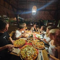 Gegen halb 3 gingen Raphi, Lisa und ich dann ebenfalls auf die andere Seite der Insel. Wir gabelten Kaspar und Maxim auf und gingen dann in das angrenzende Strandrestaurant. Es gab eine leckere Reisspeise mit einer sehr schmackhaften Gemüsesoße und noch zwei Pizzen, die wir uns teilten 🍛🍕