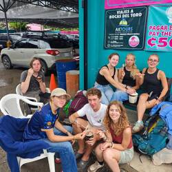 After a relatively short night, my alarm clock rang at 07:00. I had already asked Arne yesterday if he could drive me ashore at around 07:30. After I had packed the last of my things and said goodbye to some of the students who were already sitting on the main deck, he agreed to this request - without me having to wake him up. We did another 'lap of honor' around the Regina and then headed towards Isla Colon. Arne dropped me off at the speedboat transportation station and I went to buy some food for the day. At 08:30 on the dot, the speedboat from the 'Caribe Shuttle Service' took us over to Almirante. There we changed from boat to minibus and all my fellow travelers and I reached the border town of 'Guabito' on time after an hour 🚤 🚌