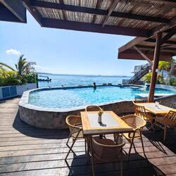 Die gesamte Atmosphäre auf der Insel - vom liegen in Wasser-Hängematten bis hin zum hinten-herüber-ins-Wasser-fallen bei unserem Wasser-Pavillon 🏖️